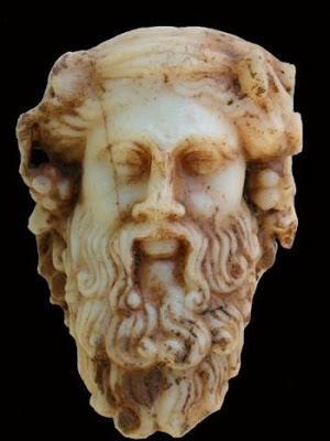 Mosaico de la villa romana de Torre de Benagalbón y herma hallada durante su excavación