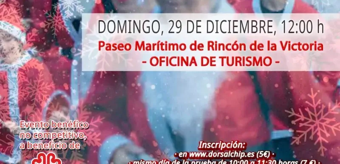 La XII San Silvestre de Rincón de la Victoria se celebrará el domingo 29 de diciembre, a partir de las 12:00. Los participantes podrán realizar la carrera de kilómetro Solidario (500 metros), o la Carrera Popular San Silvestre de 5 kilómetros.