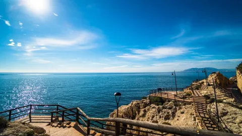 Este paseo por El Cantal comunica el núcleo urbano de La Cala del Moral con Rincón de la Victoria a través de un trazado peatonal a modo de laberinto con escaleras donde las vistas del paisaje marino son impresionantes.