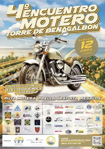 El Encuentro Motero Torre de Benagalbón está organizado por la Asociación de Vecinos Torresol y el Área de Deportes del Ayuntamiento de Rincón de la Victoria, en colaboración con la Concejalía de Cultura, y en el que participan hasta 15 clubes y donde el principal patrocinador es Navarro Hermanos. Para más información puedes llamar al 670 064 149.