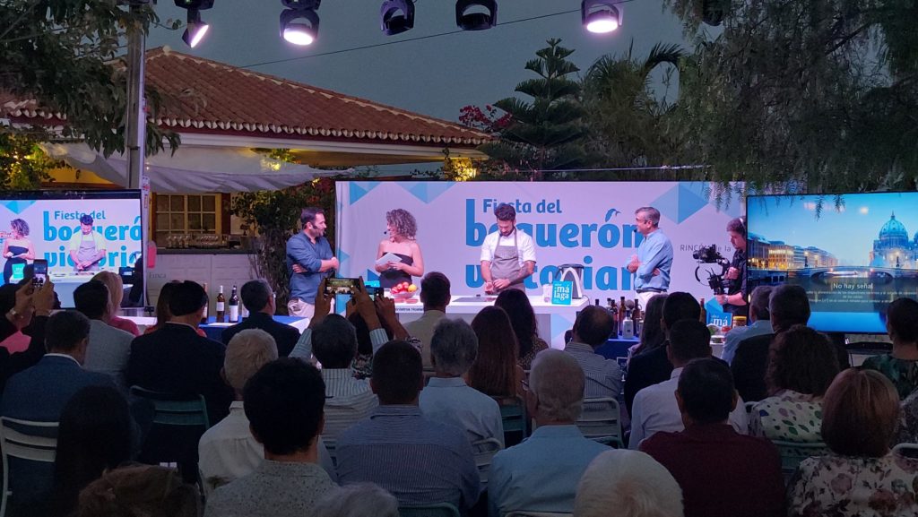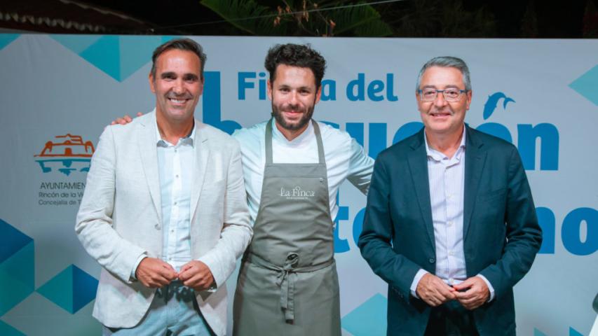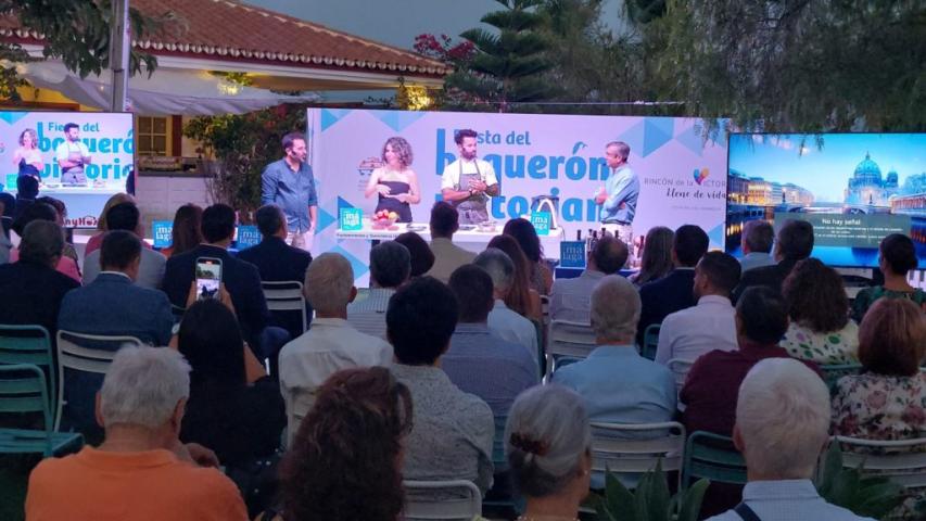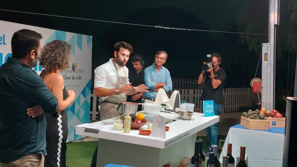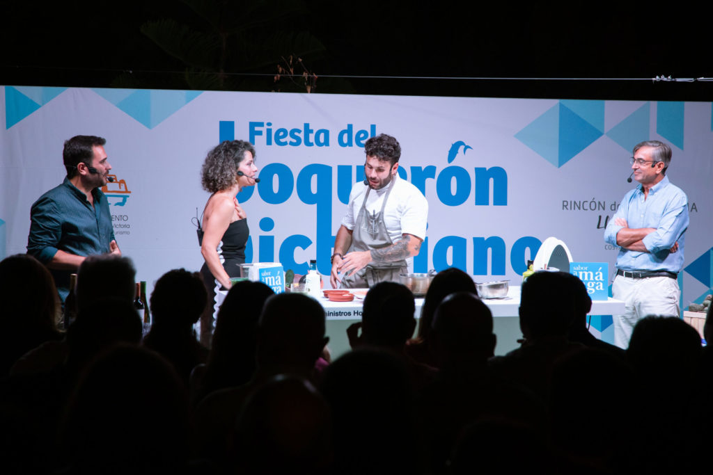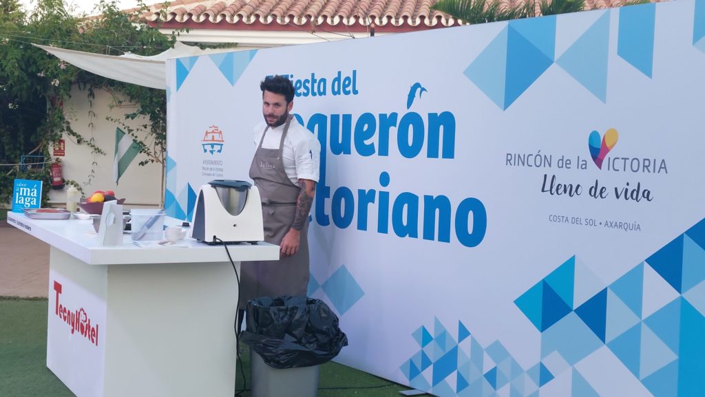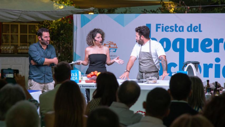 El chef Bosco Benítez, de ‘La Cochera del Abuelo’ (Sevilla) y presentador de ‘Tierra de Sabores’, en Canal Sur TV fue el encargado de arranca en esta edición de 2023 la Fiesta del Boquerón Victoriano de Rincón de la Victoria. A los asistentes explicó cómo elaborar una ‘Ensalada templada de verano con gazpacho y boquerón marinado’ y también una ‘Lasaña de boquerón victoriano’.