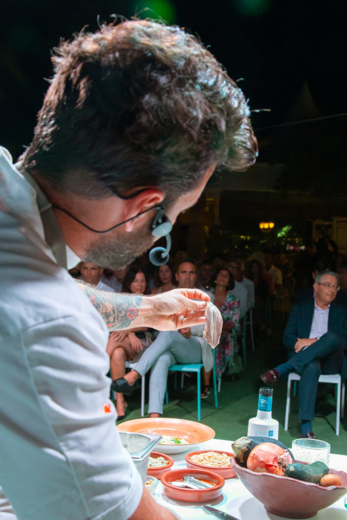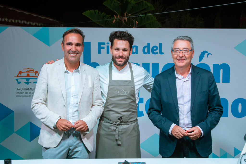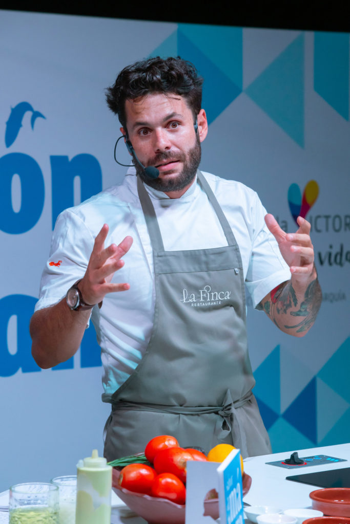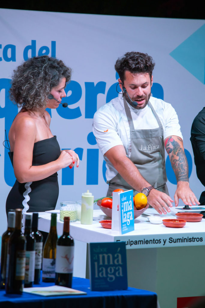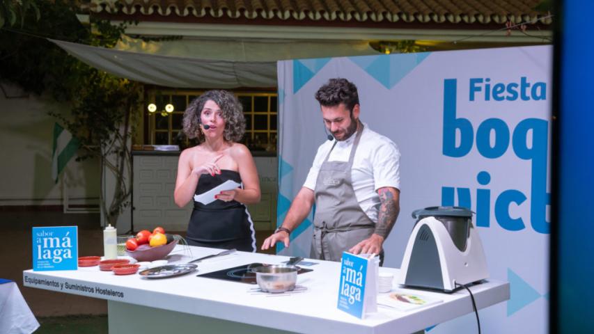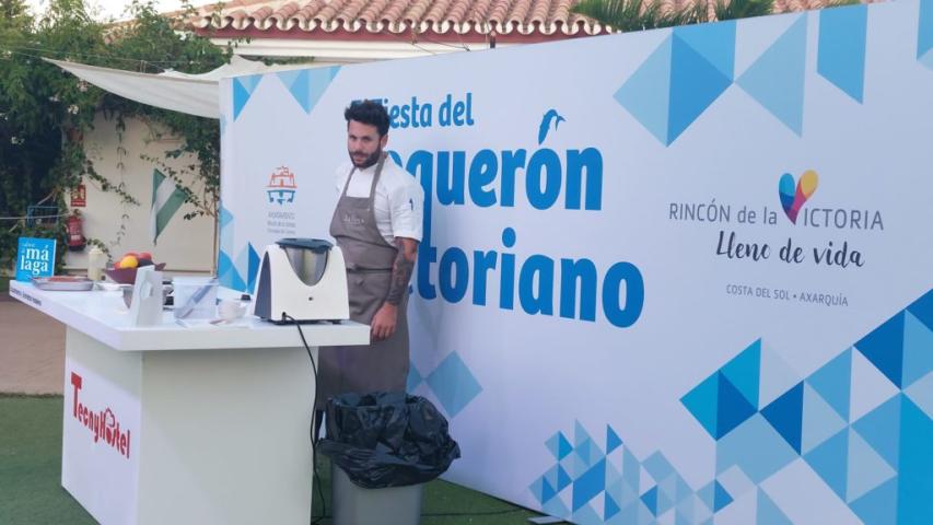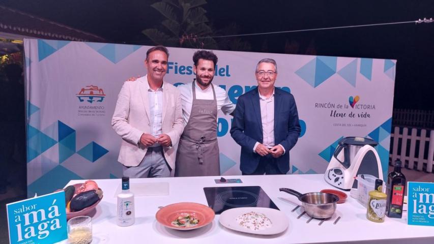 El chef Bosco Benítez, de 'La Cochera del Abuelo' (Sevilla) y presentador de 'Tierra de Sabores', en Canal Sur TV fue el encargado de arranca en esta edición de 2023 la Fiesta del Boquerón Victoriano de Rincón de la Victoria. A los asistentes explicó cómo elaborar una 'Ensalada templada de verano con gazpacho y boquerón marinado' y también una 'Lasaña de boquerón victoriano'.