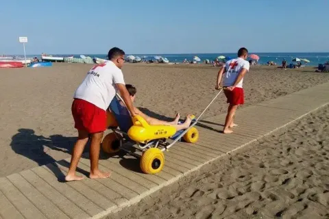 La Concejalía de Playas del Ayuntamiento de Rincón de la Victoria ha puesto en marcha un año más el programa de atención a personas con movilidad reducida 'Disfruta la Playa' a través de Cruz Roja.