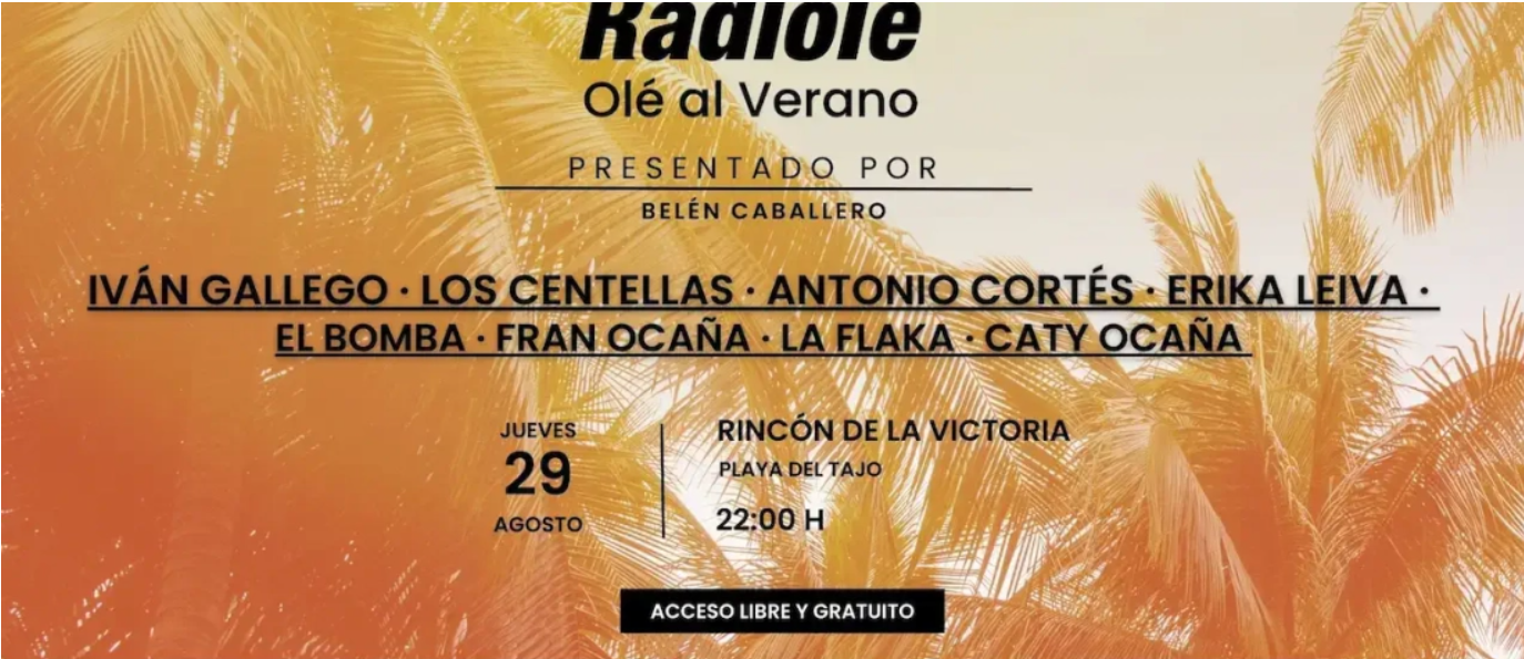 La Gala Olé al Verano, un evento celebrado por Radiolé, una de las cadenas de radio españolas más conocidas, se celebrará este 2024 en la playa de El Tajo de Rincón de la Victoria. El evento acogerá las actuaciones en directo de artistas consagrados y será presentado por Belén Caballero.