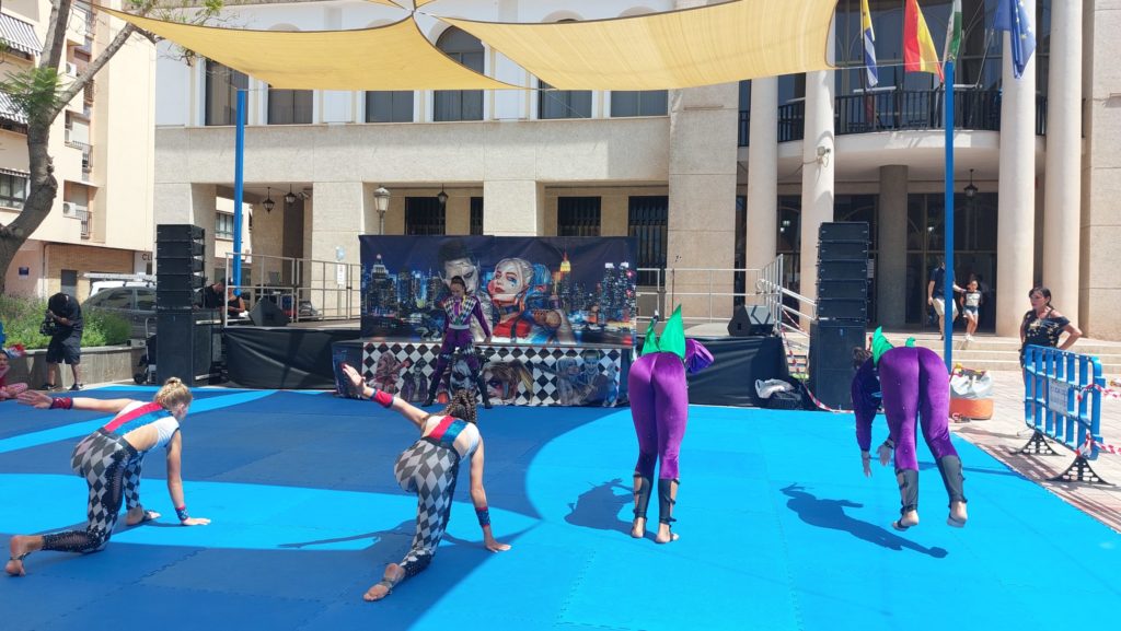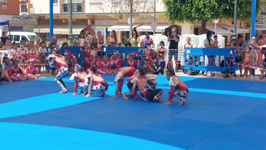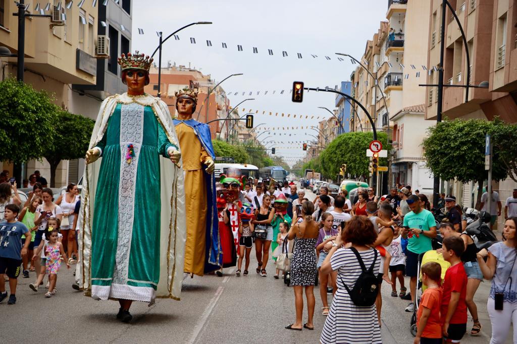 Hoy viernes, la feria de día ha comenzado con el tradicional desfile de Gigantes y Cabezudos, la amenización musical de la Banda de Rincón de la Victoria y las diversas actuaciones de folclore, danza y Fit-Kid en la plaza Al-Ándalus.