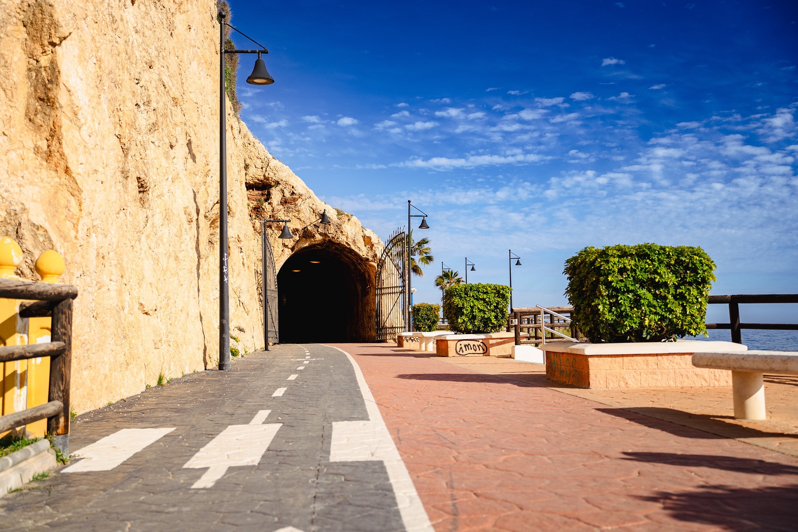 Construidos en 1908 como parte de la antigua línea ferroviaria entre Málaga y Vélez-Málaga, los túneles permiten disfrutar del recorrido con comodidad y resguardo. Están adaptados con carril bici y accesos para personas con movilidad reducida, convirtiéndolos en una opción ideal para días calurosos o lluviosos.