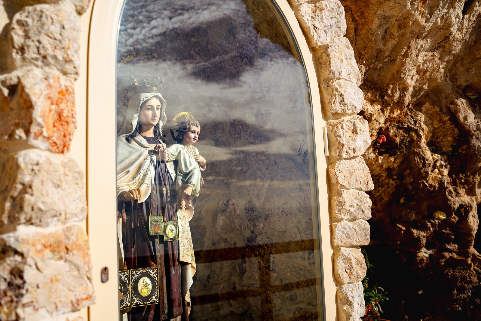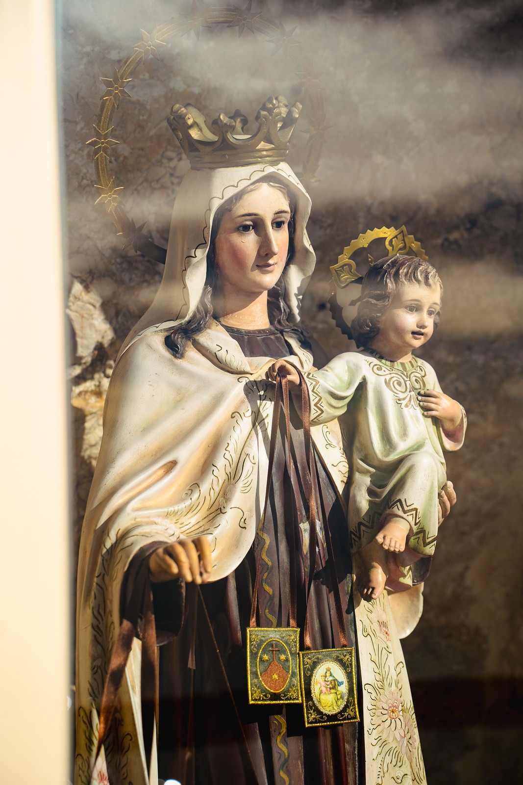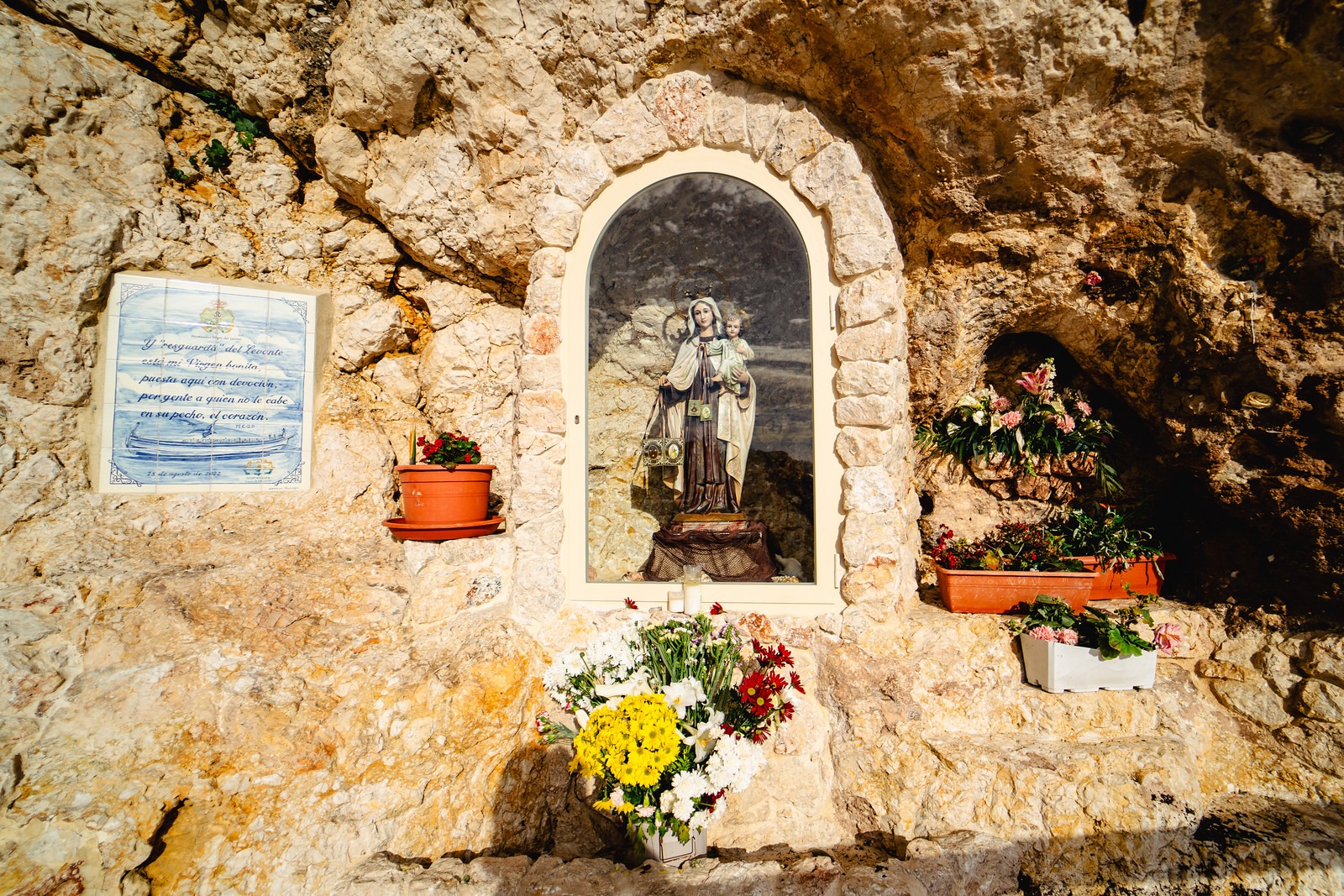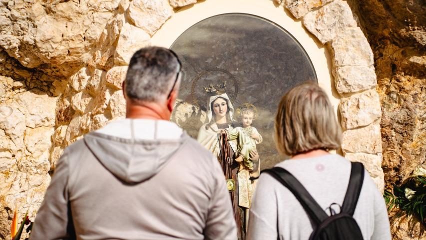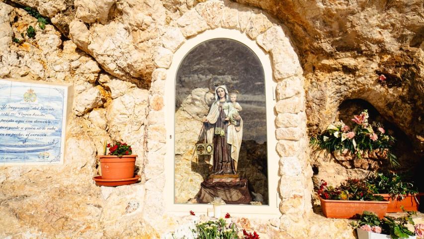 Dos imágenes de la Virgen del Carmen, patrona de los marineros, se encuentran enclavadas en las rocas de ambos extremos del recorrido. Estos puntos de culto son una muestra de la devoción local y un lugar de reflexión para los visitantes.