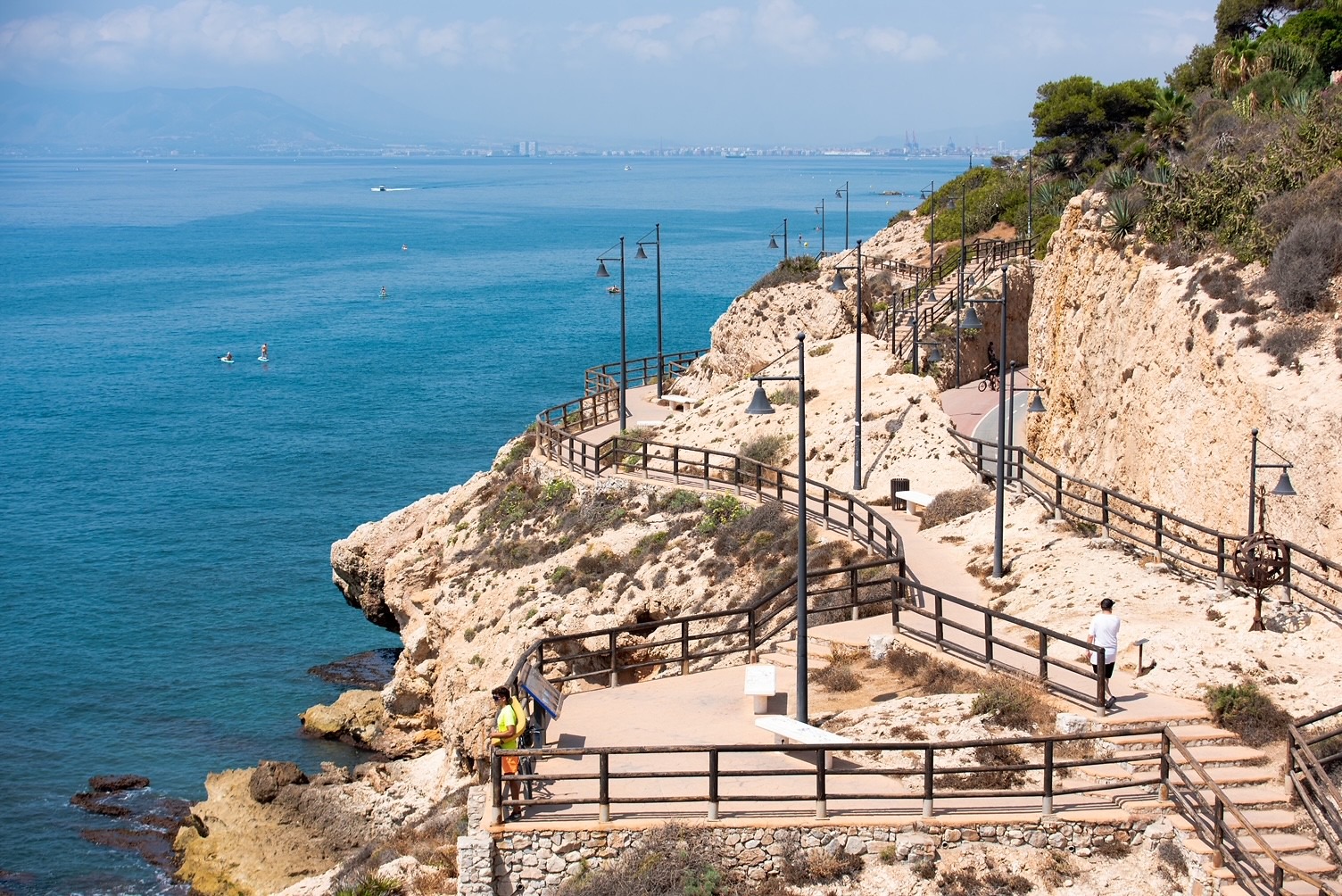 El paseo puede hacerse bordeando los acantilados por sus senderos junto al mar o cruzando los antiguos túneles de El Cantal, una obra histórica que aún conserva el encanto de principios del siglo XX. La combinación de estos recorridos hace que la experiencia sea accesible para personas de todas las edades y condiciones físicas, ya sea caminando, en bicicleta o incluso practicando deportes acuáticos.