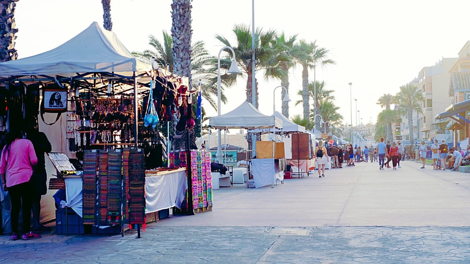 Pequeños empresarios y comerciantes ambulantes se reúnen en más de 35 puestos para la venta de bisutería, gemas, abanicos, incienso y otros productos. Un mercado pensado tanto para residentes como para el numeroso turismo que llega cada año a nuestras tierras.