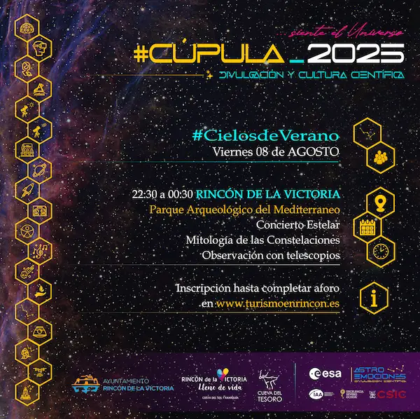 El programa de la noche comenzará a las 22:30 horas. Habrá una charla sobre la mitología de las constelaciones, una observación nocturna de planetas y objetos de espacio profundo mediante un telescopio profesional, y un concierto estelar protagonizado por una soprano acompañada al piano, que amenizará una experiencia cultural única bajo el cielo de Rincón de la Victoria.