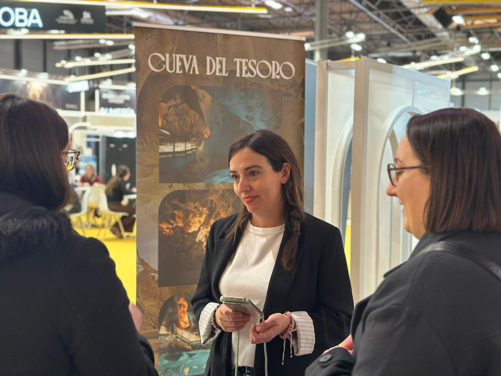 Esta historia se trasladó a FITUR mediante una cuidada escenografía que recreaba el ambiente de la cueva, con un cofre lleno de monedas, elementos visuales y roll-ups promocionales que conectaban emocionalmente al visitante con el patrimonio milenario del municipio.
