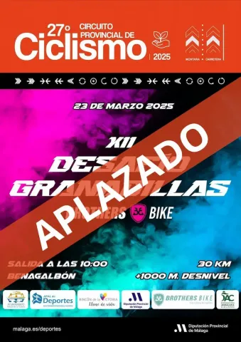 El Club Ciclismo Brothers Bike informa que el evento, inicialmente previsto para el 23 de marzo, queda aplazado debido a las últimas lluvias y la previsión de precipitaciones para los próximos días. Os esperamos el 13 de abril para disfrutar de esta bonita cita.