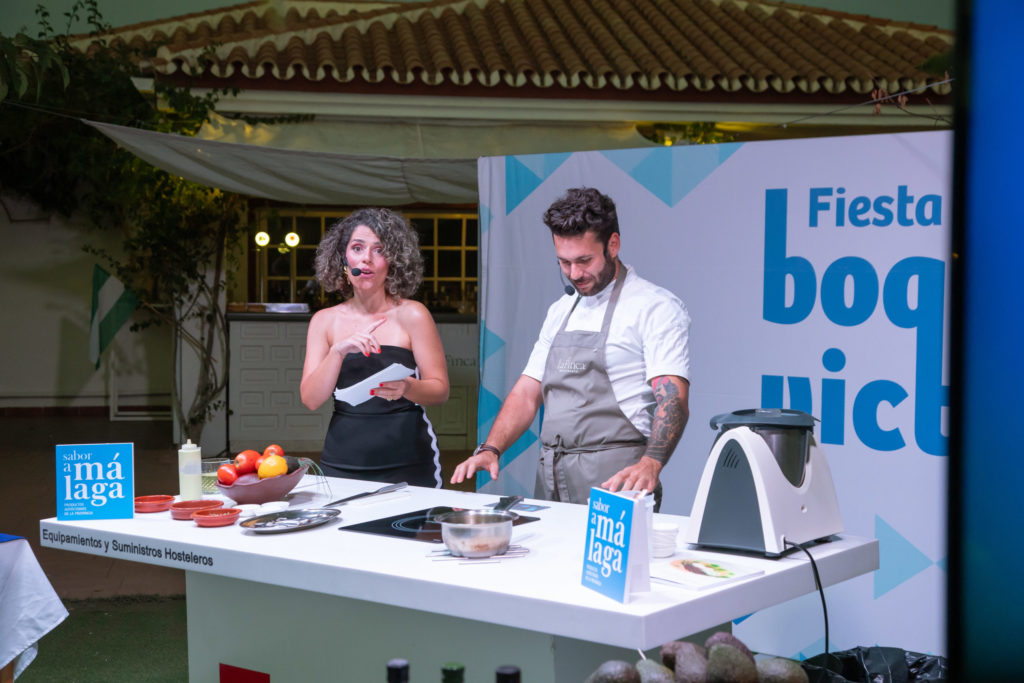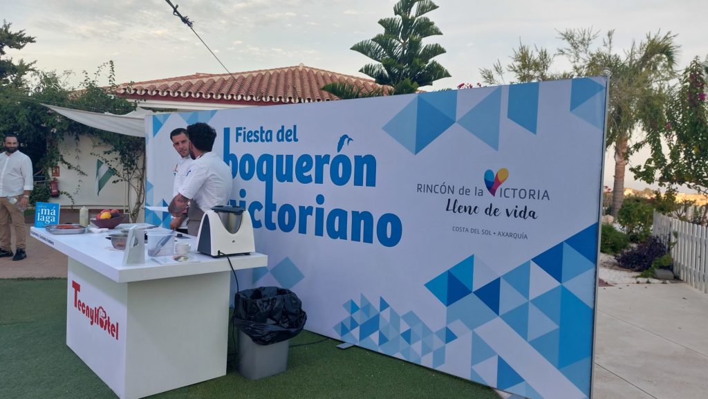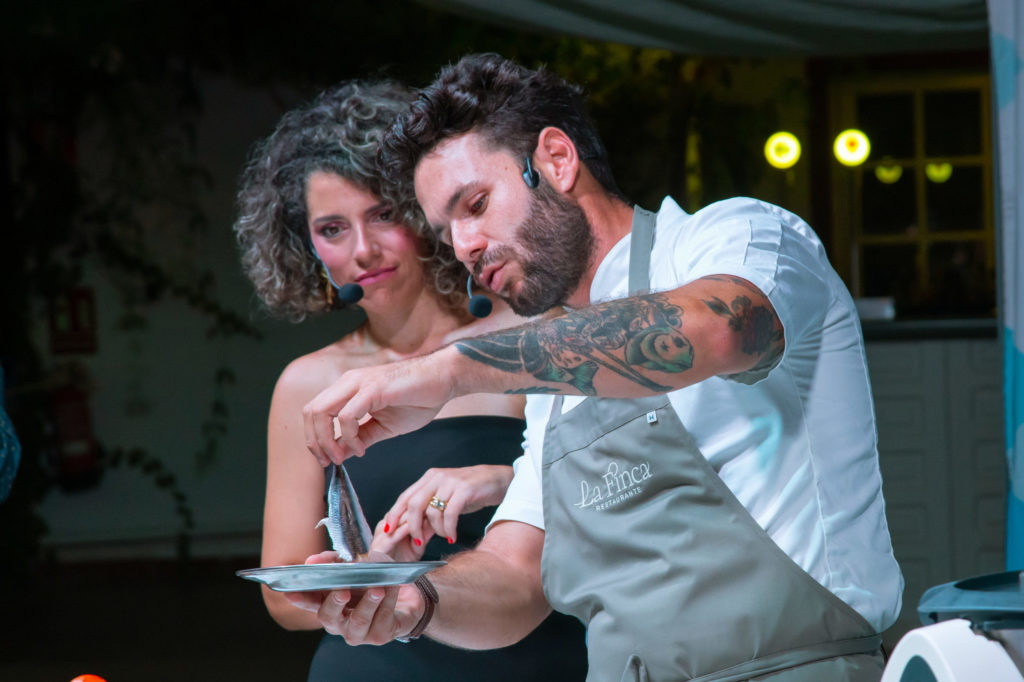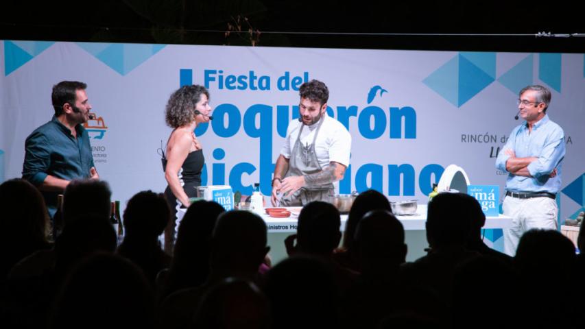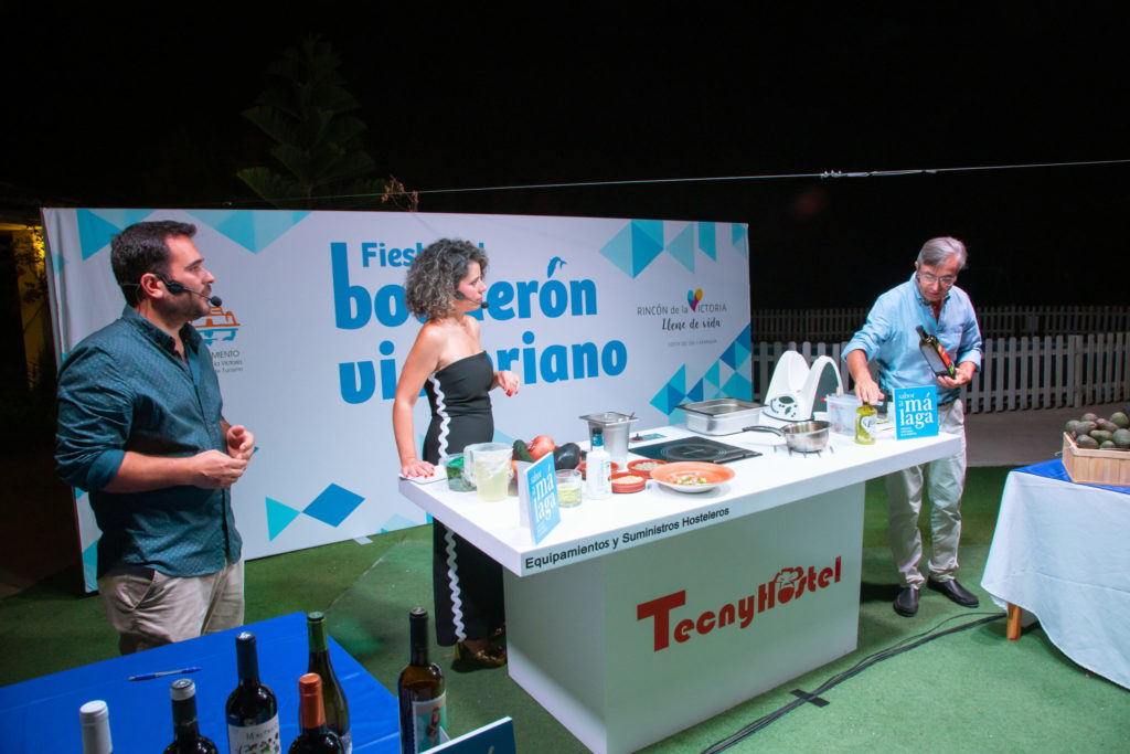 El chef Bosco Benítez, de ‘La Cochera del Abuelo’ (Sevilla) y presentador de ‘Tierra de Sabores’, en Canal Sur TV fue el encargado de arranca en esta edición de 2023 la Fiesta del Boquerón Victoriano de Rincón de la Victoria. A los asistentes explicó cómo elaborar una ‘Ensalada templada de verano con gazpacho y boquerón marinado’ y también una ‘Lasaña de boquerón victoriano’.