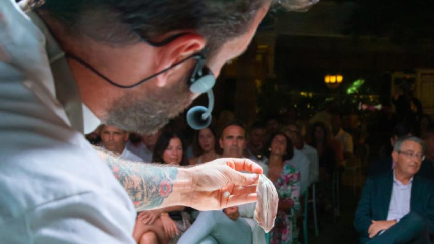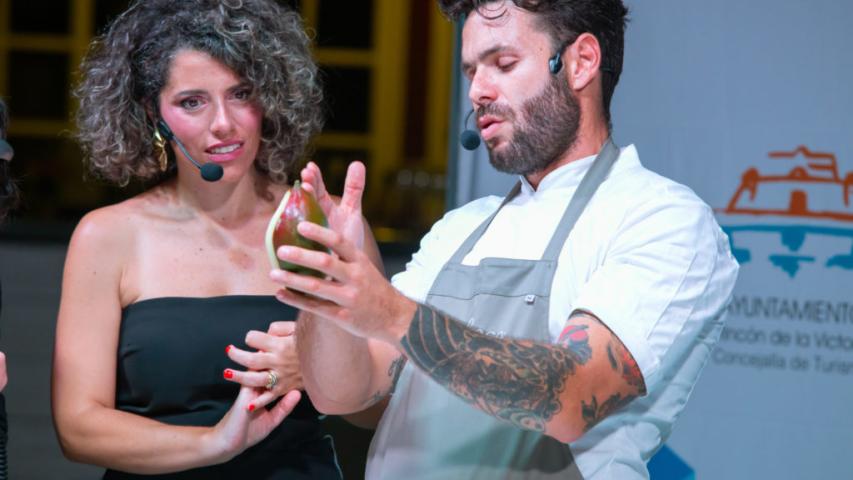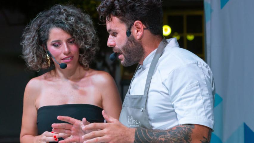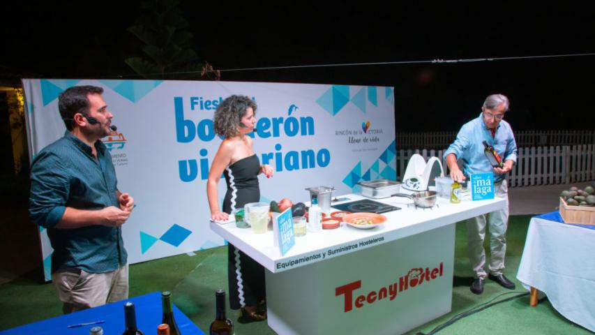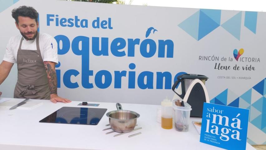 El chef Bosco Benítez, de 'La Cochera del Abuelo' (Sevilla) y presentador de 'Tierra de Sabores', en Canal Sur TV fue el encargado de arranca en esta edición de 2023 la Fiesta del Boquerón Victoriano de Rincón de la Victoria. A los asistentes explicó cómo elaborar una 'Ensalada templada de verano con gazpacho y boquerón marinado' y también una 'Lasaña de boquerón victoriano'.