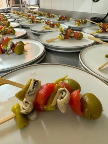 A través de seis platos con el boquerón victoriano como principal protagonista, la chef Daniela Romero pudo deleitar a medio centenar de asistentes en el evento. El primero de ellos ha sido gilda de boquerón en vinagre y cherry asado con infusión de albahaca con el maridaje de Don Pepe de Bodegas Cortijo La Fuente. El siguiente ha sido crema de pipirrana y tartar de boquerones con maridaje de Tartratos de Bodega A. Muñoz Cabrera, DIMOBE.
