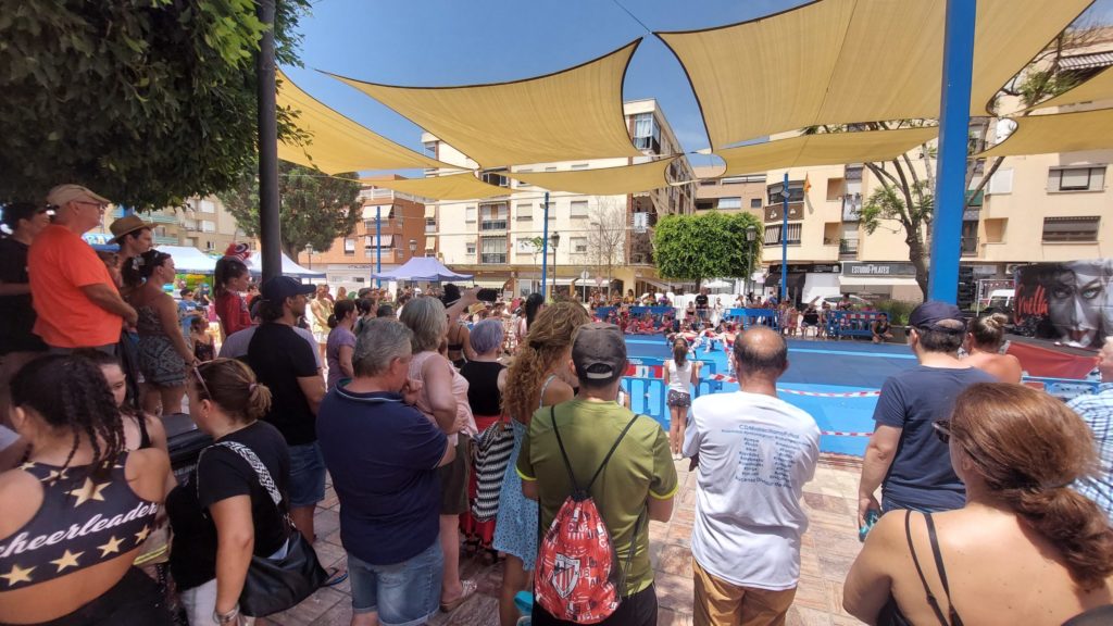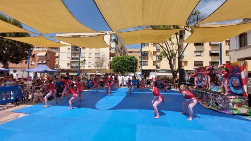 Hoy viernes, la feria de día ha comenzado con el tradicional desfile de Gigantes y Cabezudos, la amenización musical de la Banda de Rincón de la Victoria y las diversas actuaciones de folclore, danza y Fit-Kid en la plaza Al-Ándalus.
