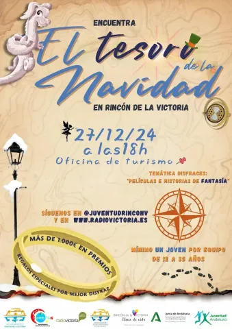 Rincón de la Victoria celebrará una nueva edición del Tesoro de la Navidad con nuevas pruebas de destreza, retos y más de mil euros en premios. La gincana se llevará a cabo el próximo 27 de diciembre, entre las 18:00 y 21:00 horas. Se podrá participar de forma individual o por equipos. Este año la temática del concurso será películas e historias de fantasías.